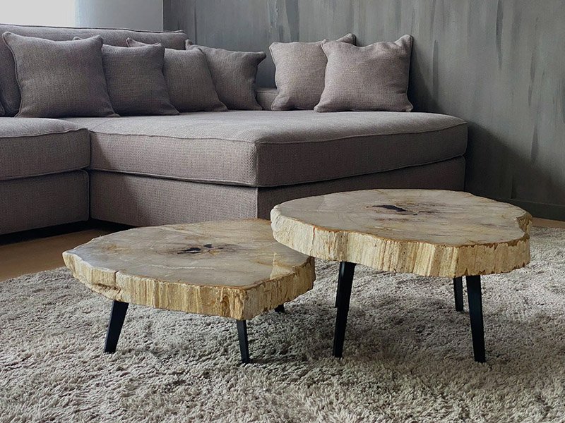 Our coffee tables will be the centerpiece of any living room. Our striking coffee tables are made from petrified wood and come from Indonesia and originated in the Miocene era, between 25 - 250 million years ago. Over time the material transformed from wood into stone, making it incredibly resistant and strong.