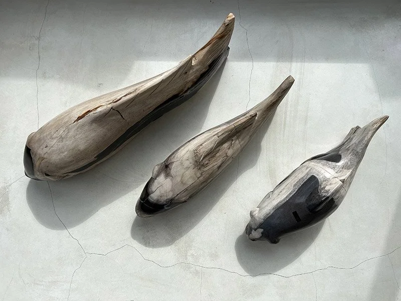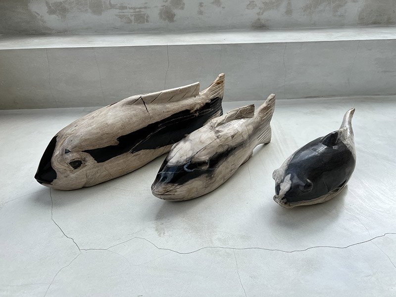 They come in a variety of soft or dark hues of greys and creams reminiscent of koi fish. They come in a variety of sizes and are perfectly designed to be placed on a coffee table, shelf or side table. Each fish is a unique hand-crafted piece of art that can never be created again.