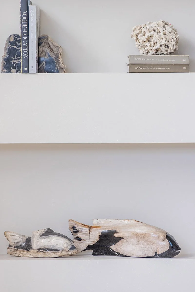 These exquisitely hand sculptured fish carvings are a unique piece of décor. Made of petrified wood, which is ancient, fossilised wood ranging in age from 25 to 250 million years, these fish carvings are a smooth yet heavy piece of décor.