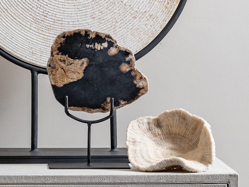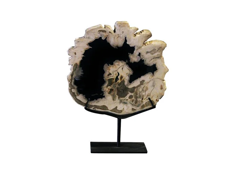Our Petrified Wood Slab Statues are made from petrified wood that's been cut and polished by hand in Indonesia. These objects anchor shelves and mantels with their organic, sculptural form. The natural materials used mean that no two are exactly alike.